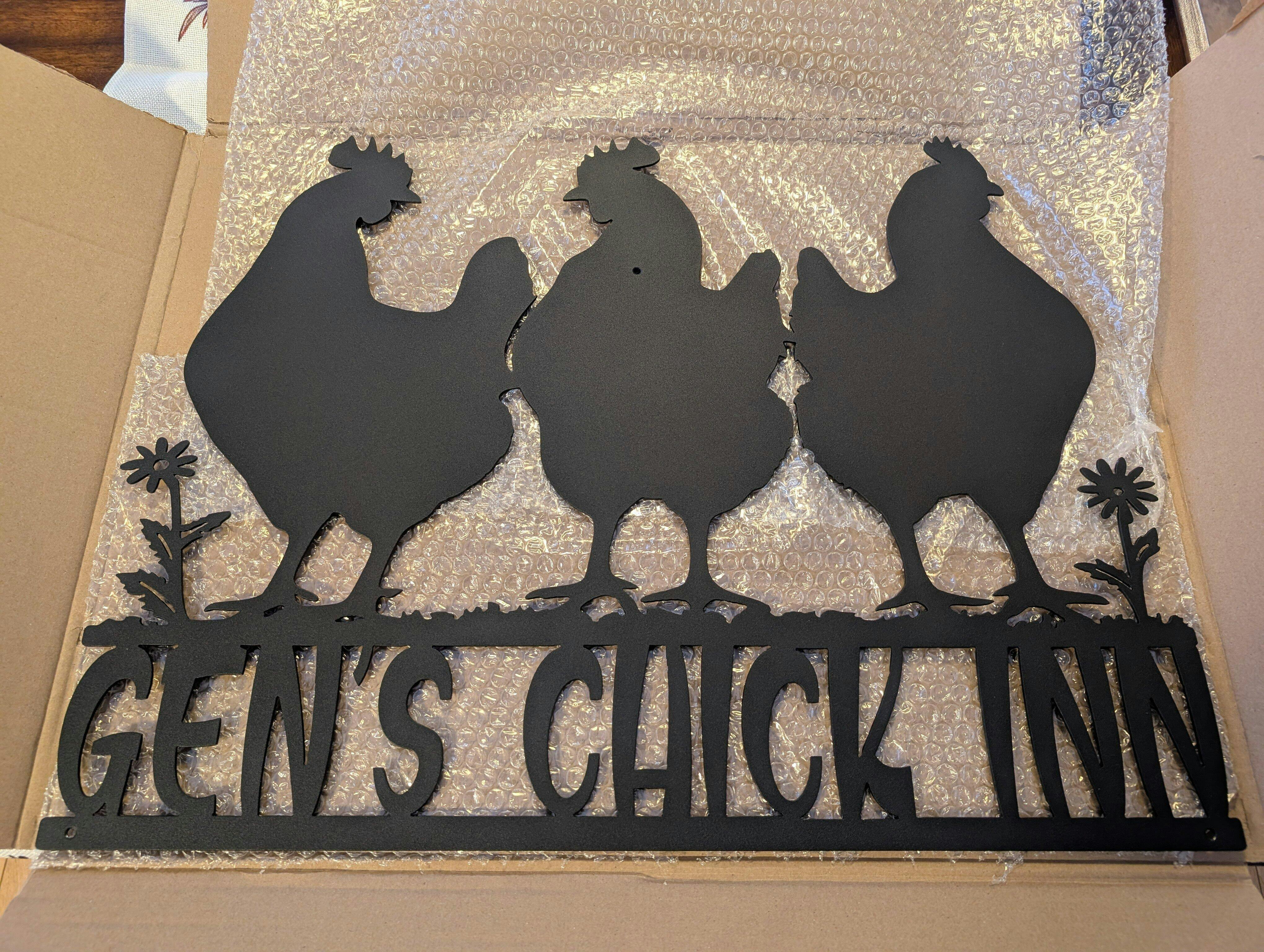 This sign featuring three hens is ideal for your chicken coop at home or on the farm. Show your love for your chickens with this unique decoration. Made with quality materials, this sign will add a special touch to your coop and delight your visitors at the same time!